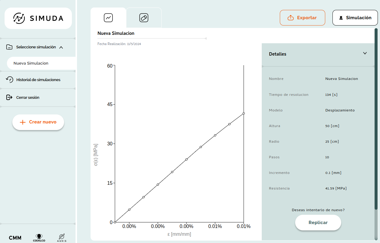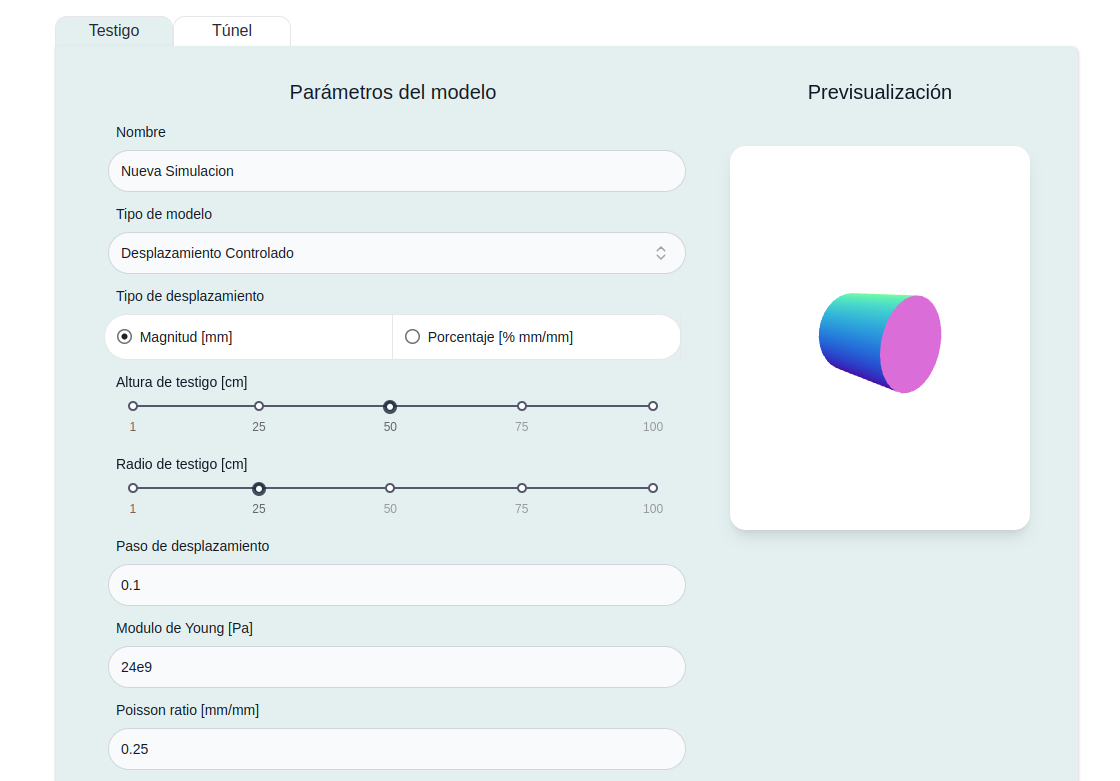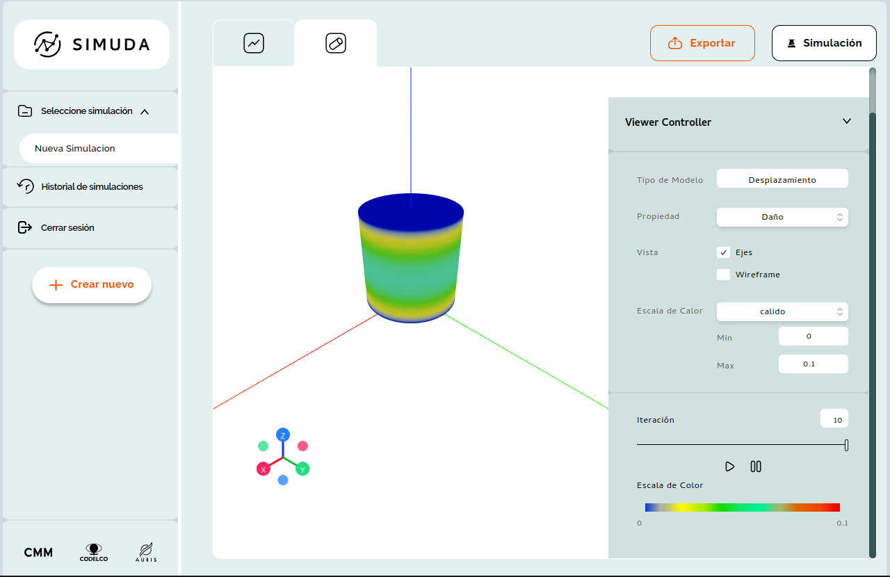 SIMUDA es un sistema innovador diseñado para simular el daño en testigos de roca bajo carga o desplazamiento controlado. Integra modelos matemáticos avanzados y una visualización 3D interactiva que permite a los ingenieros observar la evolución del daño en tiempo real, optimizando el análisis y la comprensión de las propiedades del material.